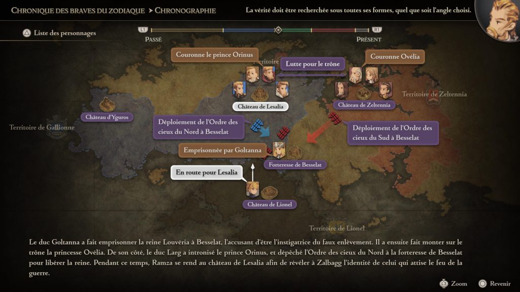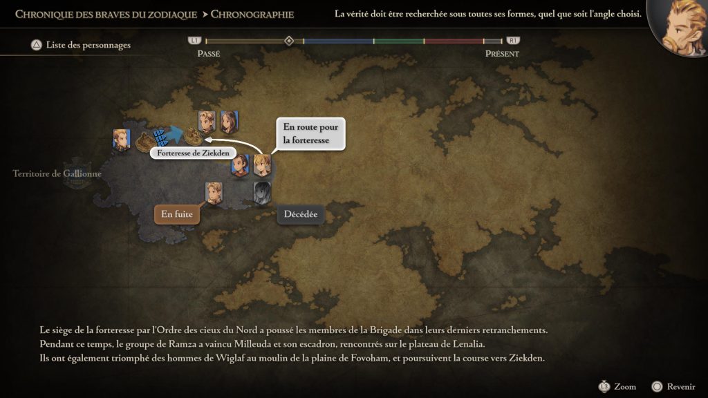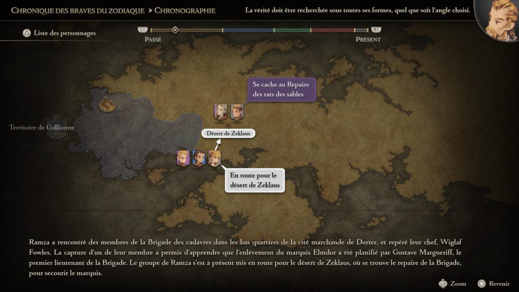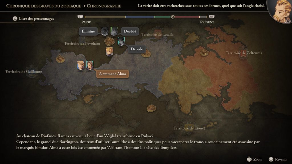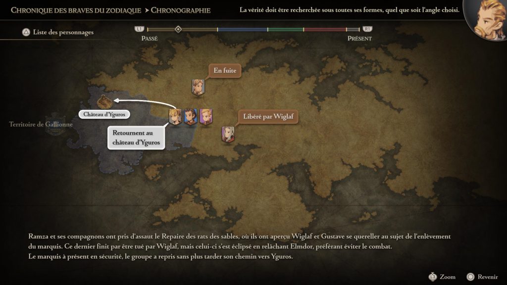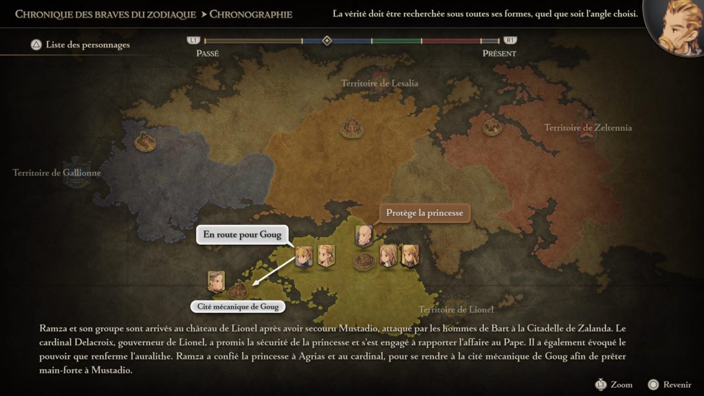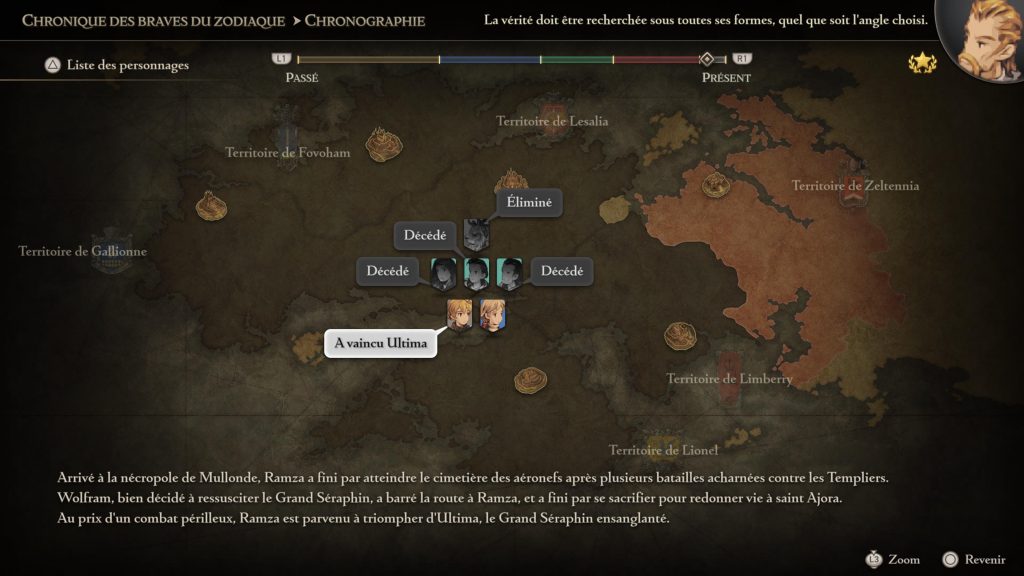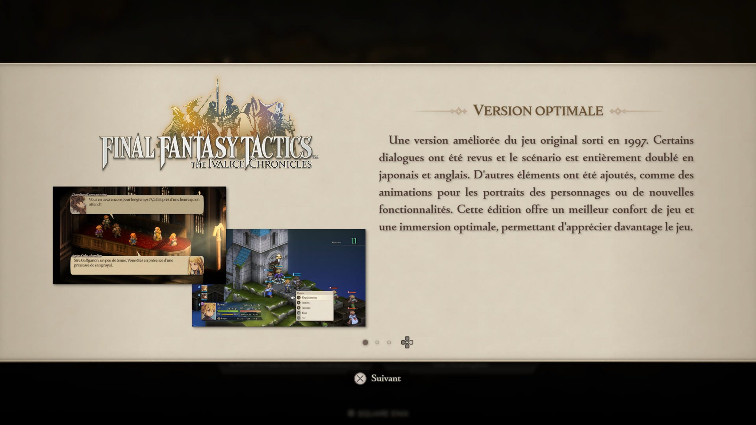 Cet ajout révèle aux plus curieux des fragments d’histoire oubliés mais permet aussi de mieux comprendre l’origine des mythiques nihilithes. Ces quêtes offrent des récompenses uniques, souvent liées à des classes rares ou des équipements spéciaux mais aussi à de nouveaux personnages spéciaux pour votre équipe. À cela se greffe un Codex entièrement intégré, retraçant les événements du jeu sous forme de frise chronologique interactive. Véritable outil de compréhension, il est un ajout précieux, presque indispensable, pour mesurer toute la profondeur politique et tragique de l’univers fascinant de Yasumi Matsuno. Enfin, Square propose 3 modes de difficultés dans cette version restaurée afin de permettre aux néophytes du genre TRPG de découvrir « plus facilement » ce monument.