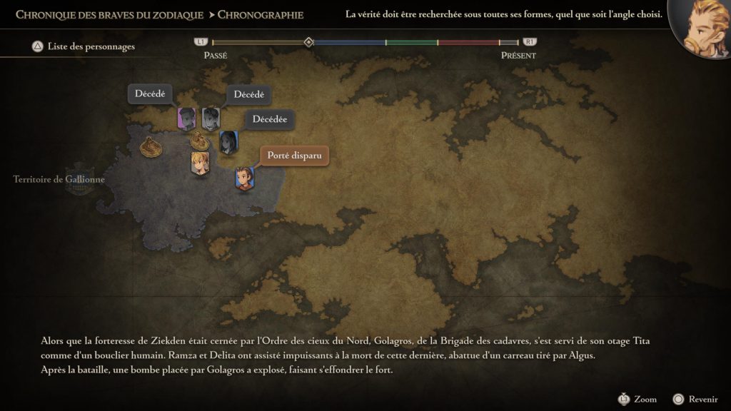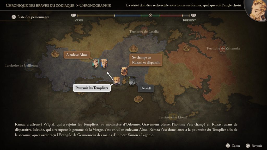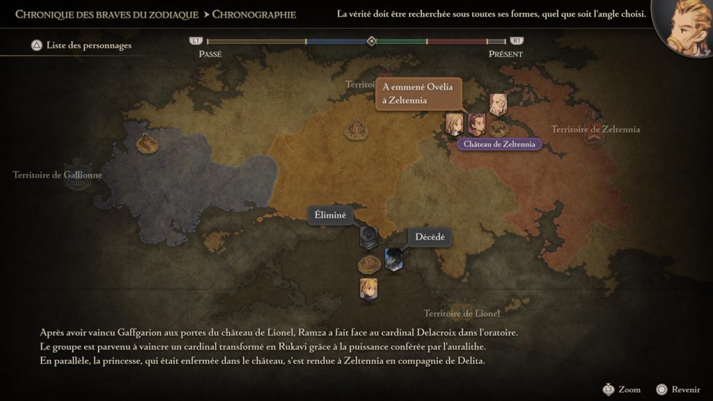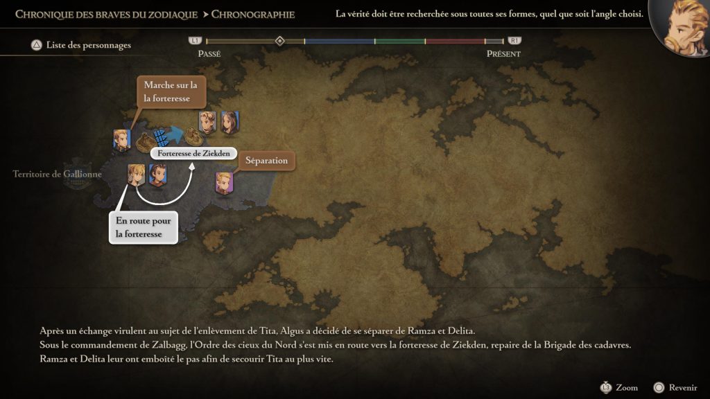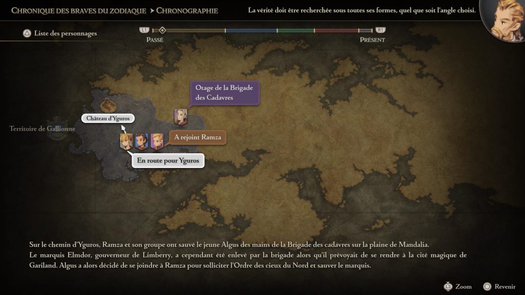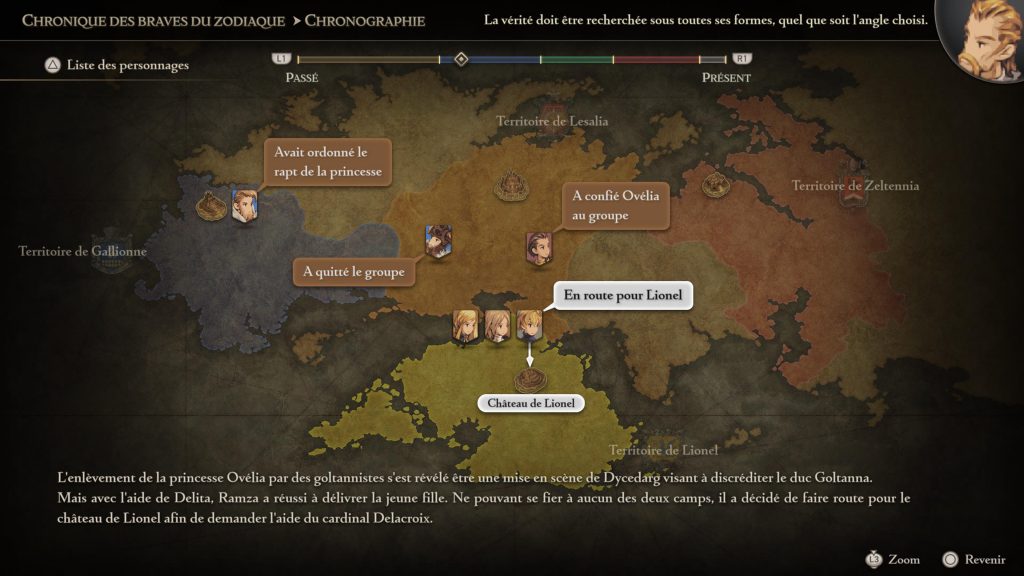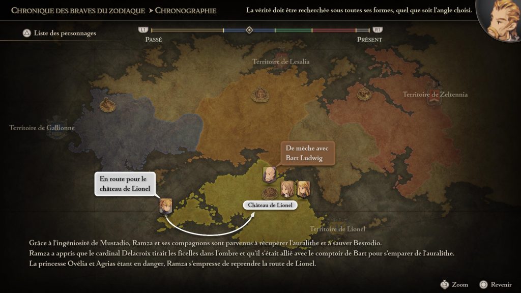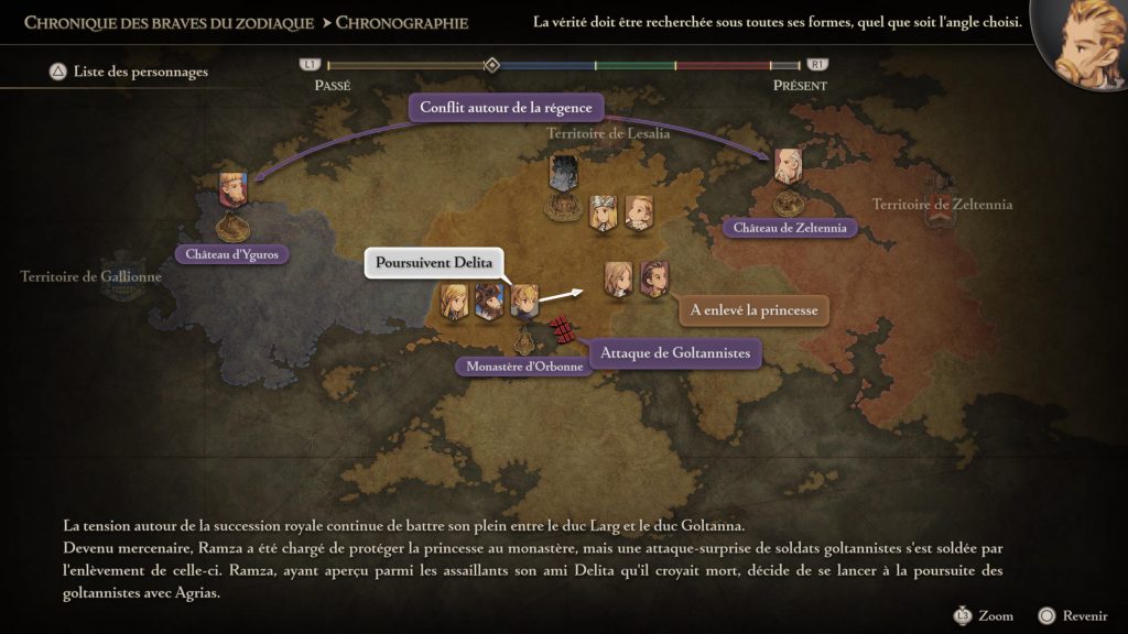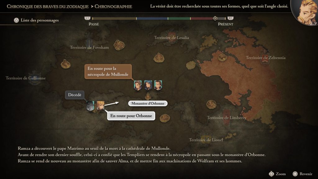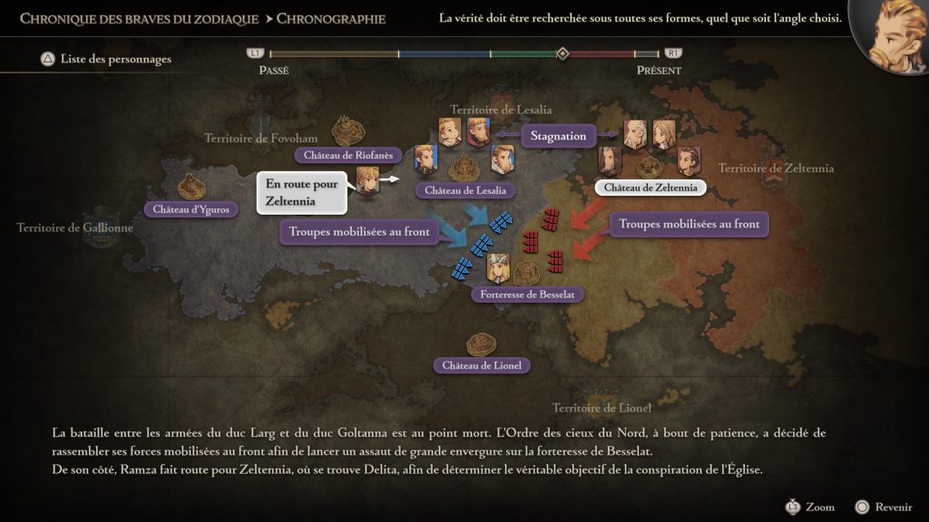 Cet ajout révèle aux plus curieux des fragments d’histoire oubliés mais permet aussi de mieux comprendre l’origine des mythiques nihilithes. Ces quêtes offrent des récompenses uniques, souvent liées à des classes rares ou des équipements spéciaux mais aussi à de nouveaux personnages spéciaux pour votre équipe. À cela se greffe un Codex entièrement intégré, retraçant les événements du jeu sous forme de frise chronologique interactive. Véritable outil de compréhension, il est un ajout précieux, presque indispensable, pour mesurer toute la profondeur politique et tragique de l’univers fascinant de Yasumi Matsuno. Enfin, Square propose 3 modes de difficultés dans cette version restaurée afin de permettre aux néophytes du genre TRPG de découvrir « plus facilement » ce monument.