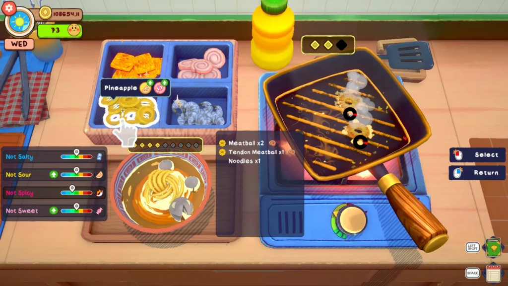 Après avoir hérité du restaurant de votre grand-mère, c’est désormais à vous d’enfiler votre tablier afin de gagner le titre de la meilleure cuisine de la ville. KuloNiku: Bowl Up! met à votre disposition boulettes de viande, garnitures en tous genres et épices du monde pour tester de nouvelles recettes et proposer de délicieux plats à votre clientèle. En plus de pouvoir décorer l’intérieur du restaurant à votre guise, vous pourrez lier (ou non) des amitiés avec les autres personnages et participer à des batailles culinaires pour impressionner la ville. J’ai particulièrement adoré les commandes lors des étapes de cuisine, extrêmement intuitives et aussi satisfaisantes que l’était Cooking Mama à son époque.